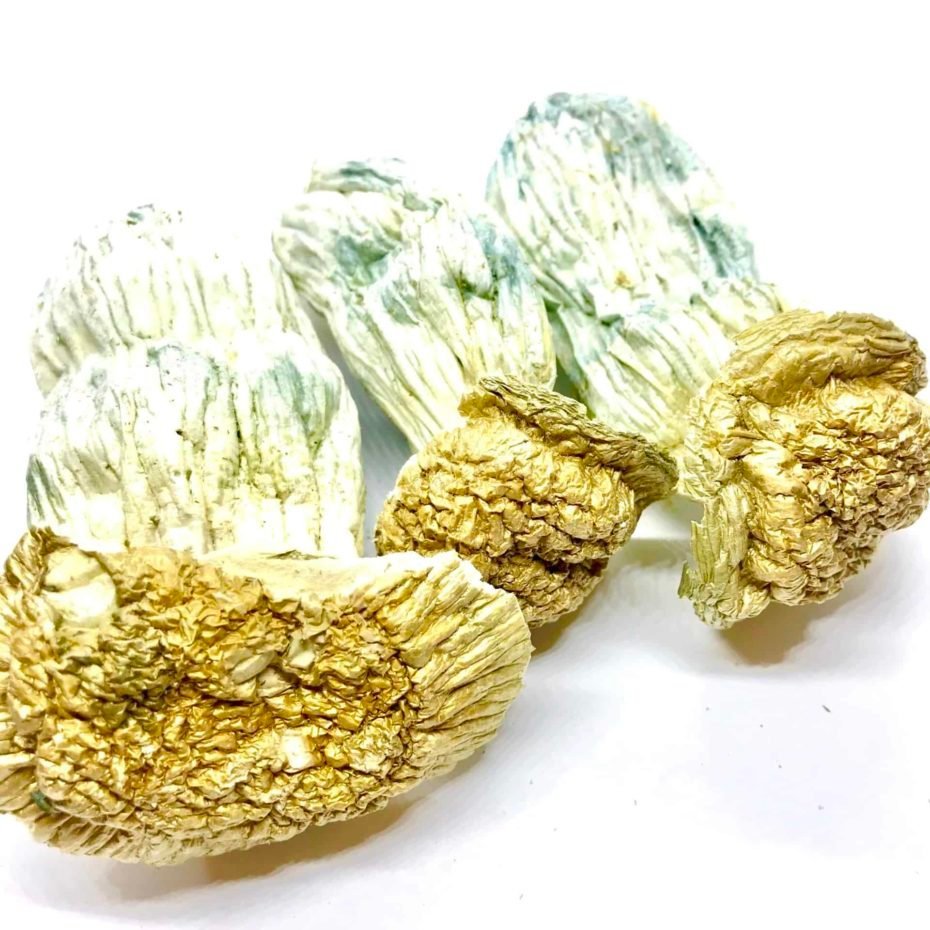 Mutated and cultured, a spore company in the 80’s called Homestead created this wonderful variant of the Penis Envy. The Melmac Penis Envy is distinguished by its alien-like features. The stem of the shroom has tendencies to be distorted while the caps have wavy edges. With its recognizable thick long stem and smaller cap, it is very easy to tell this mushroom strain apart from others.